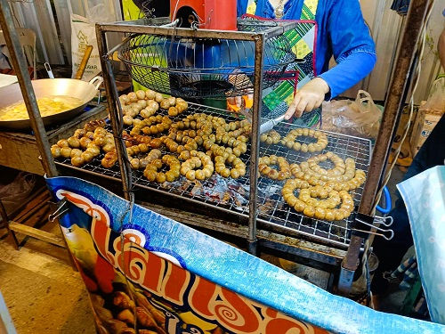 丸い形が特徴の豚肉と米を混ぜたタイ東北部イサーン地方のソーセージ「サイコークイサーン」があり